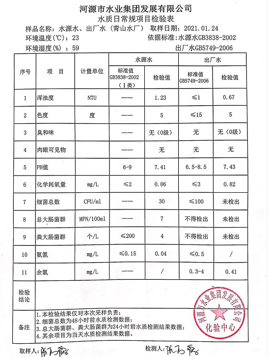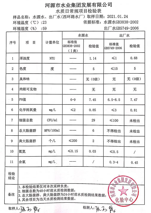 2021年1月24日水质检验报告