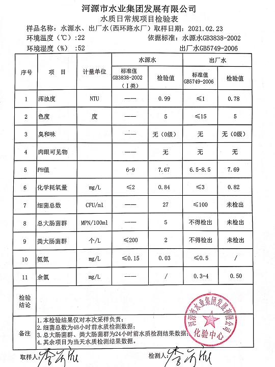 2021年2月22日水质检验报告