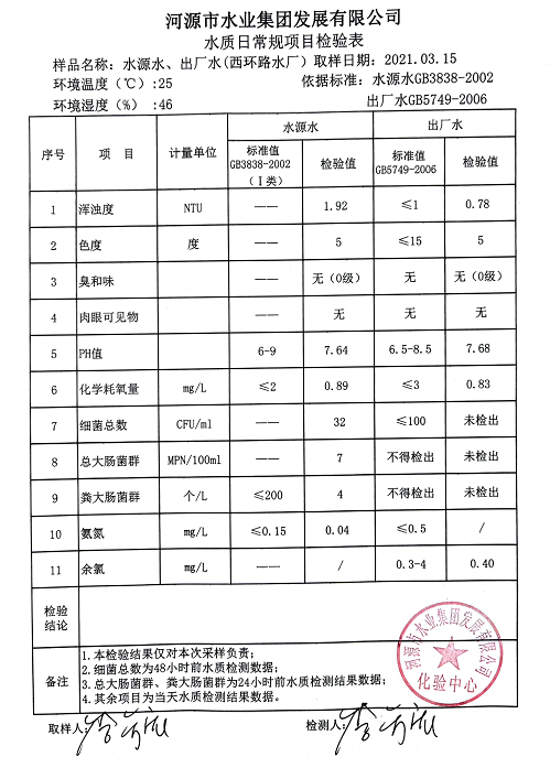 2021年3月15日水质检验报告