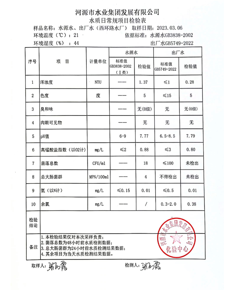 2023年3月7日水质检验报告