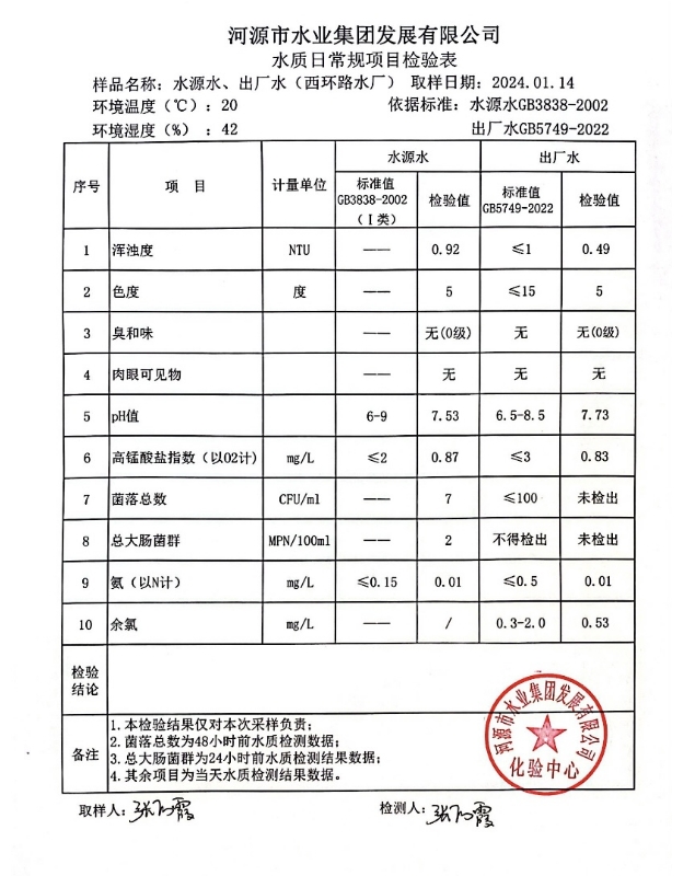 2024年1月14日水质检验报告