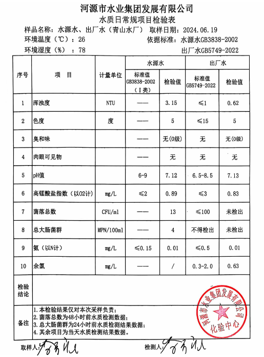 2024年6月19日水质检验报告
